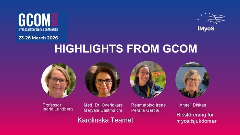 Ett axplock av senaste forskning inom myosit från världskonferensen, GCOM i Lissabon. När? Tisd. 5 maj 2026 kl. 19.00